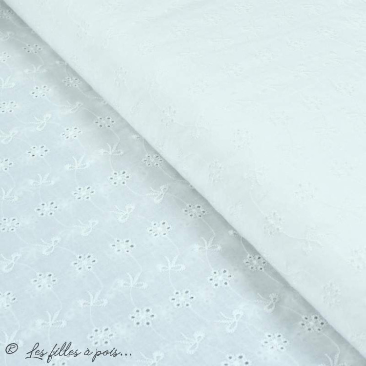 Tissu Coton Broderie Anglaise Motif Texture Blanc Casse Achat Vente