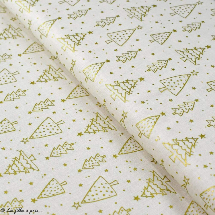 Tissu Coton Motif Sapins De Noel Ecru Et Dore Oeko Tex Et Gots Achat Vente