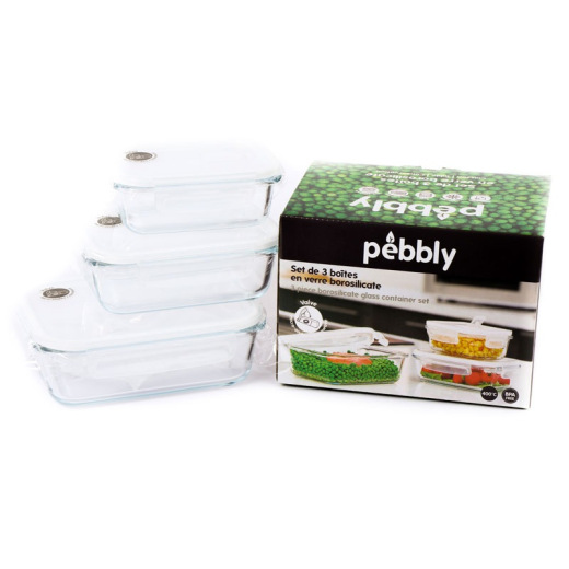 Set De 3 Boites En Verre Borosilicate Pebbly Cuisin Store