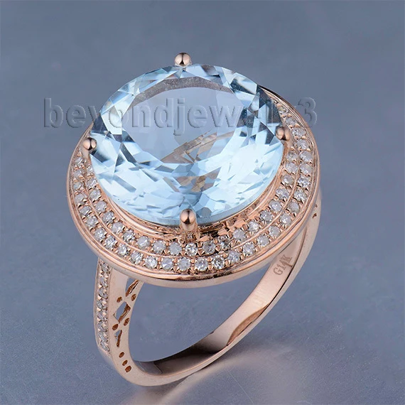Bague De Fiancailles Pour Femmes Pierre Veritable 14kt Bague De Fiancailles En Or Rose Diamant Topaze Bleu Naturel Pierres Precieuses Naturelles Aliexpress