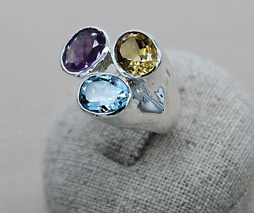 Bague Diverses Pierres Precieuses Amethyste Violette Topaze Bleue Ovale Citrine Jaune Amazon Fr Handmade