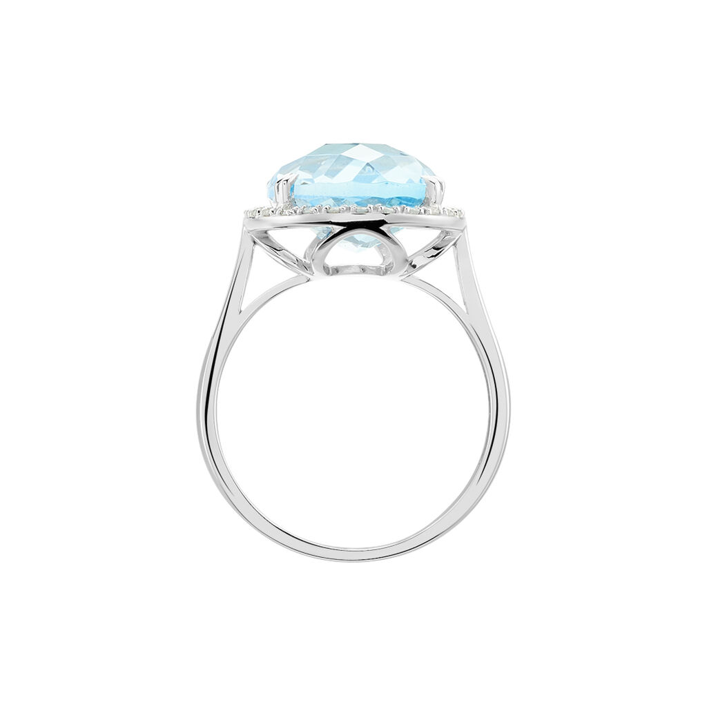 Bague Or 375 Blanc Topaze Bleue Traitee Femme Bague Maty