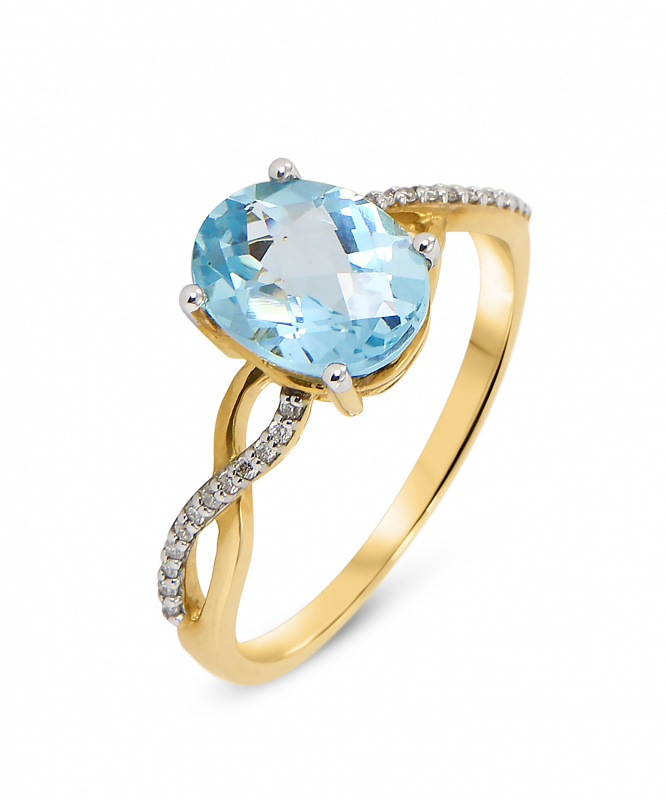 Bague Or Jaune 375 Topaze Bleue Ovale 9x7mm Et Diamant Ref