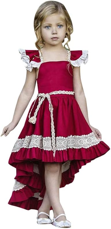 Longra Bebe Fille Princesse Robe Demoiselle D Honneur Robe Anniversaire Fete Mariage Robe Dentelle Avec Une Ceinture Fille Robe De Soiree Floral Robe De Fete Bebe Maxi Robe Rouge 12 18mois Amazon Fr Vetements Et