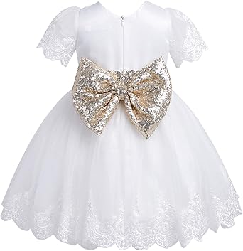Alvivi Robe De Bapteme Manches Courte Bebe Fille Robe Ceremonie Paillettes Bowknot Robe D Anniversaire Robe Princesse Soiree Noel Tenue 3 24 Mois Amazon Fr Vetements Et Accessoires