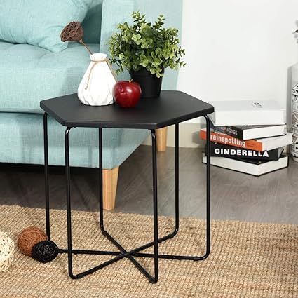 Furnish1 Table D Appoint Table Basse Bout De Canape A Cafe En Metal Noir Hexagone L 45 Cm Amazon Fr Cuisine Maison