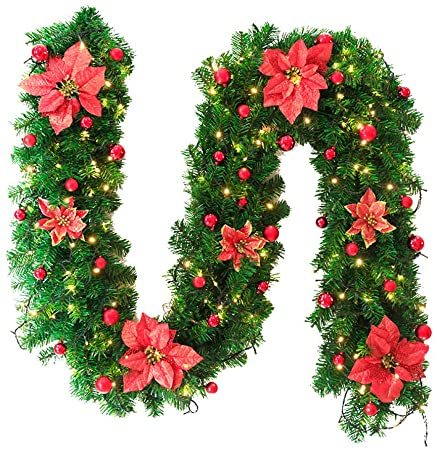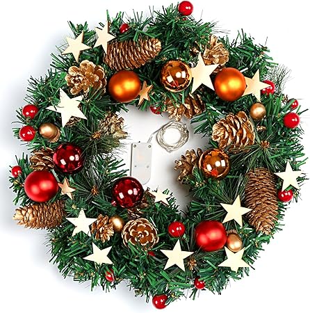 Naler Couronne De Noel Fleurs Artificielles Guirlande De Noel Baubles Lanieres Lumineuses Amazon Fr Cuisine Maison