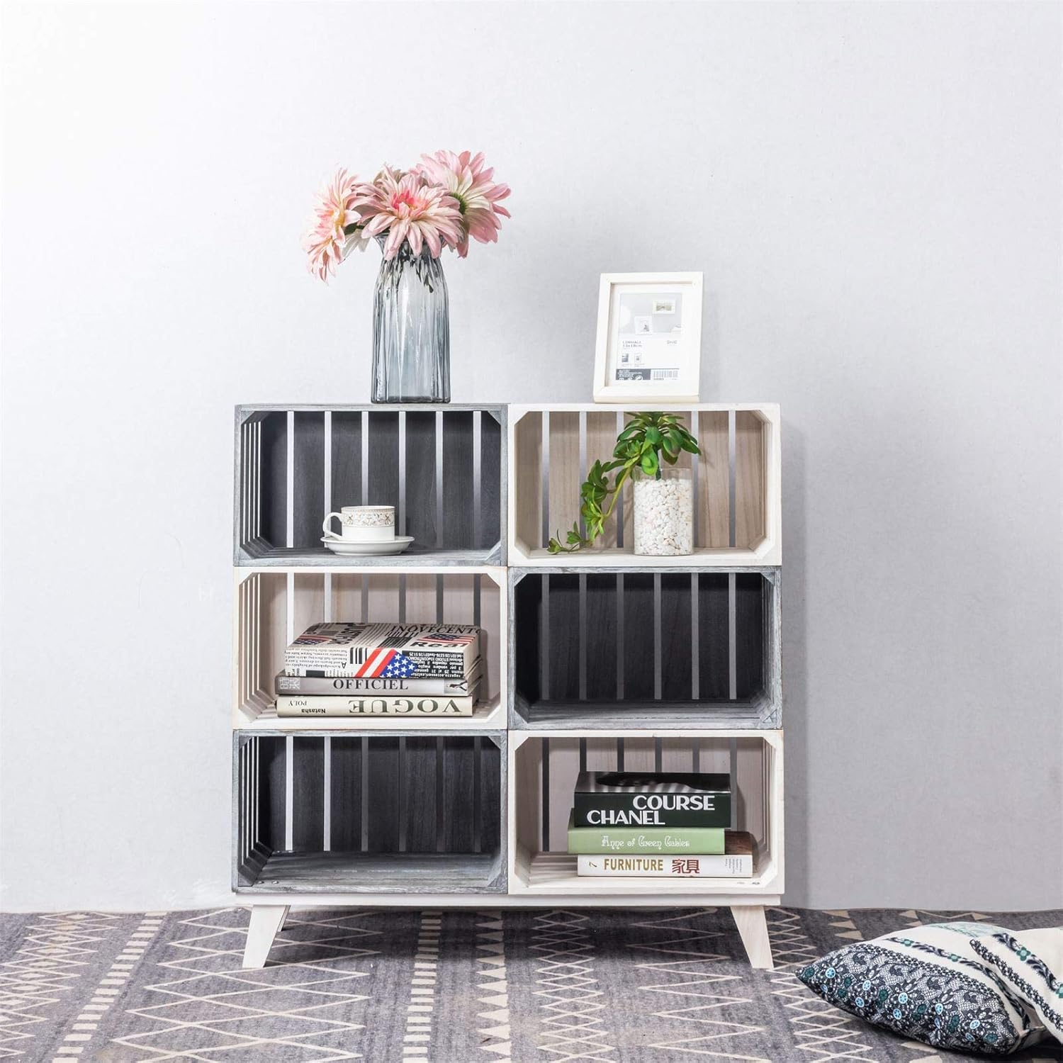 Idimex Etagere Kalena Meuble De Rangement Avec 6 Compartiments Ouverts Cagettes En Bois De Paulownia Gris Et Blanc Style Rustique Campagne Shabby Chic Abi Group Ir