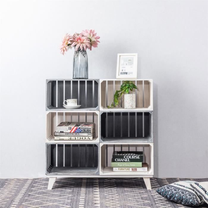 Etagere Kalena Meuble De Rangement Avec 6 Compartiments Ouverts Cagettes En Bois De Paulownia Gris Et Blanc Style Rustique Campagne Achat Vente Meuble Etagere Commode Kalena Meuble De Ra