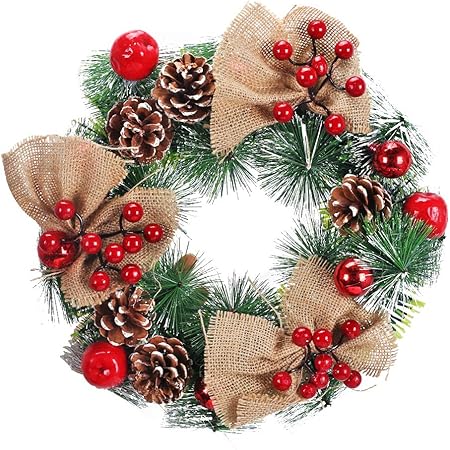 Xhxstore Couronne De Noel Porte Avec Pommes De Pin Et Baies Guirlande De Noel Pour Decoration Exterieur Et Interieur Sapin Porte Cheminee 30cm Amazon Fr Cuisine Maison