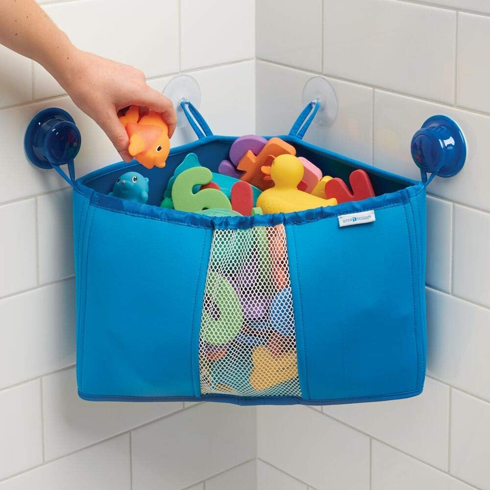 Bleu Mdesign Rangement Jouet Bain Range Jouet De Bain Avec Ventouses Pour Jouets De Bain Panier De Douche En Neoprene Pour La Douche Et La Salle De Bains Shampooing Etc Rangement Et