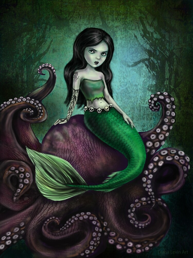 Cette Sirene Noire Est Assise Sur Une Pieuvre Elle Est Plus Dure Que La Petite Sirene Et Beaucoup Plus Amusante Oeuvre De Diana Levin Par Dianalevinart Redbubble