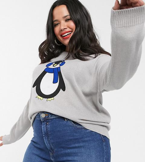 Brave Soul Plus Pull A Motif Noel Applique Gris From Asos On 21 Buttons