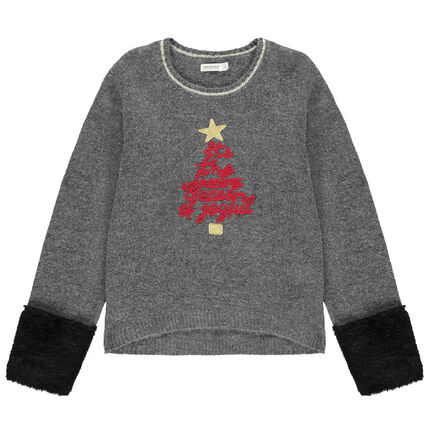 Pull De Noel Fille Motifs Jacquard Irisees Ivoire Vertbaudet