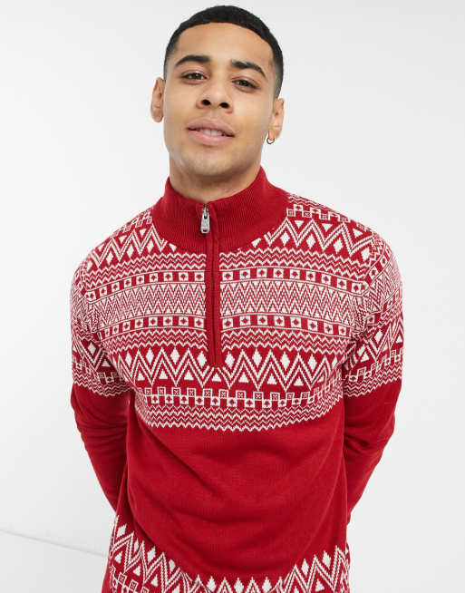Threadbare Pull De Noel Zippe A Motif Jacquard Rouge Evesham Nj