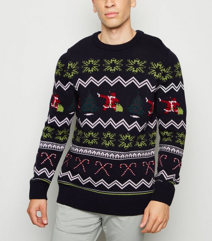 Pull De Noel Bleu Marine A Motif Pere Noel Qui Danse New Look
