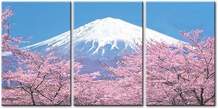 Impression Sur Toile En 3 Tableaux Mont Fuji Au Printemps Et Cerisiers En Fleurs Au Japon Amazon Fr Cuisine Maison