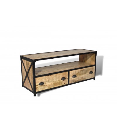 Meuble Tv En Bois De Manguier Patine Et Metal Vieilli Style Industriel