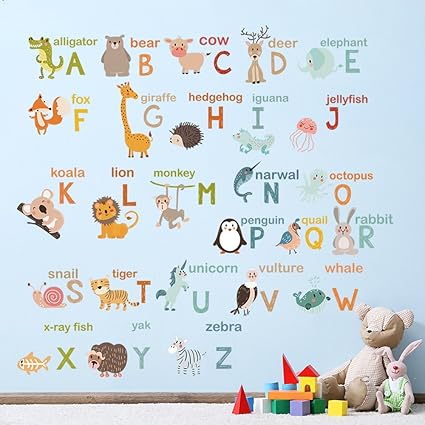 Decalmile Alphabet Animaux Stickers Muraux Enfant Education Amovible Autocollant Decoration Murale Pour Chambre Enfants Bebe Salle De Classe Salon Amazon Fr Cuisine Maison