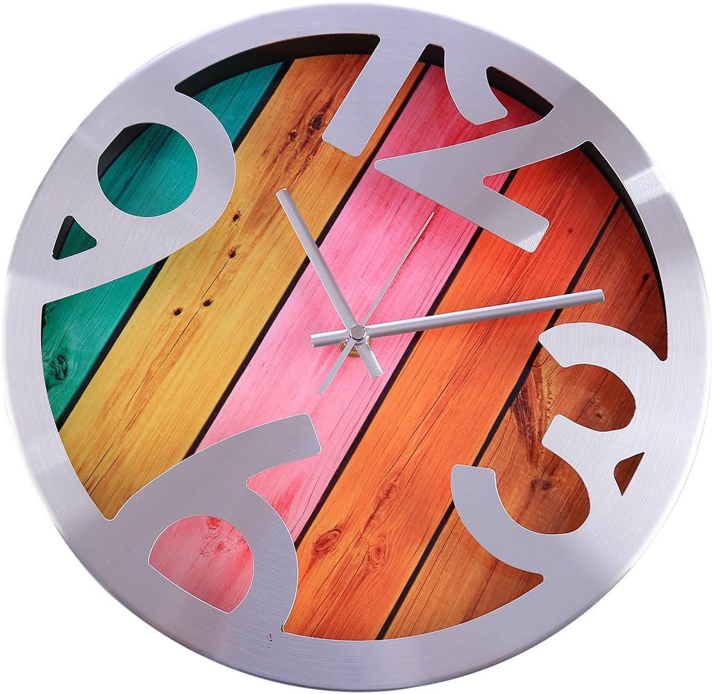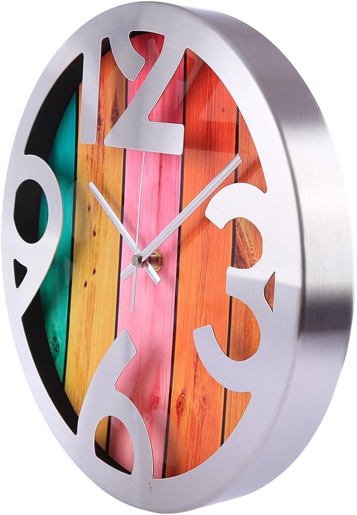 Veine De Bois Creatif Decoration De Salon Chambre Cuisine Household Wall Clock Original Foxom Horloge Murale 12 Pouces Pendule Murale Silencieuse En Verre Et Metal Decoration De La Maison Cuisine Maison