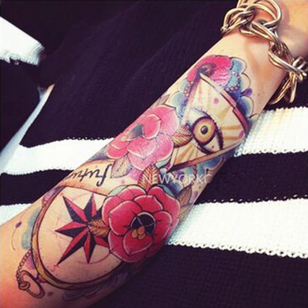 Tzxdbh Tatouage Boussole Tatouages Gothique Mecanique Manches Bras Tatouage Bras Pour Hommes Femmes Rose Pirate 3d Tatouage Faux Eau Noire Amazon Fr Cuisine Maison