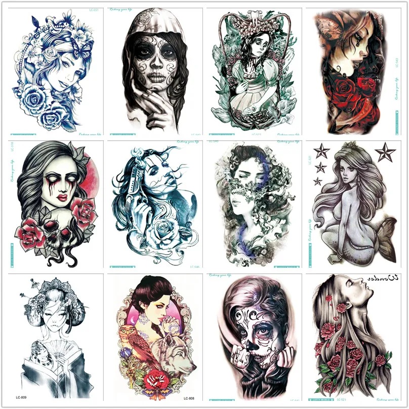 ᗗgros Bras Manches Tatouage Imperm Temporaire Autocollant Cr Ne Ange Rose Lotus Hommes Pleine Fleur Tatoo Corps Art Tatto Fille 61