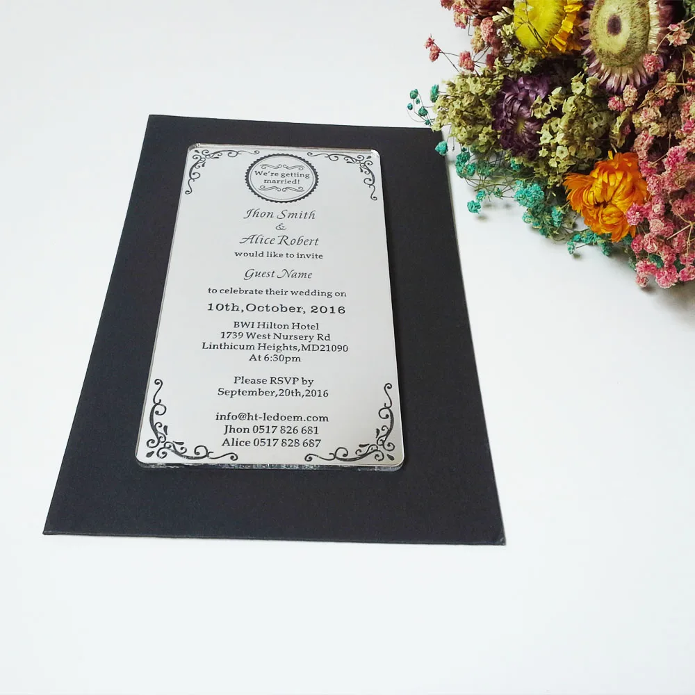 Carte D Invitation De Mariage Acrylique A Miroir Argent Carte D Invitation Personnalisee 100x100mm Decoupee Au Laser 180 Pieces Par Lot Aliexpress