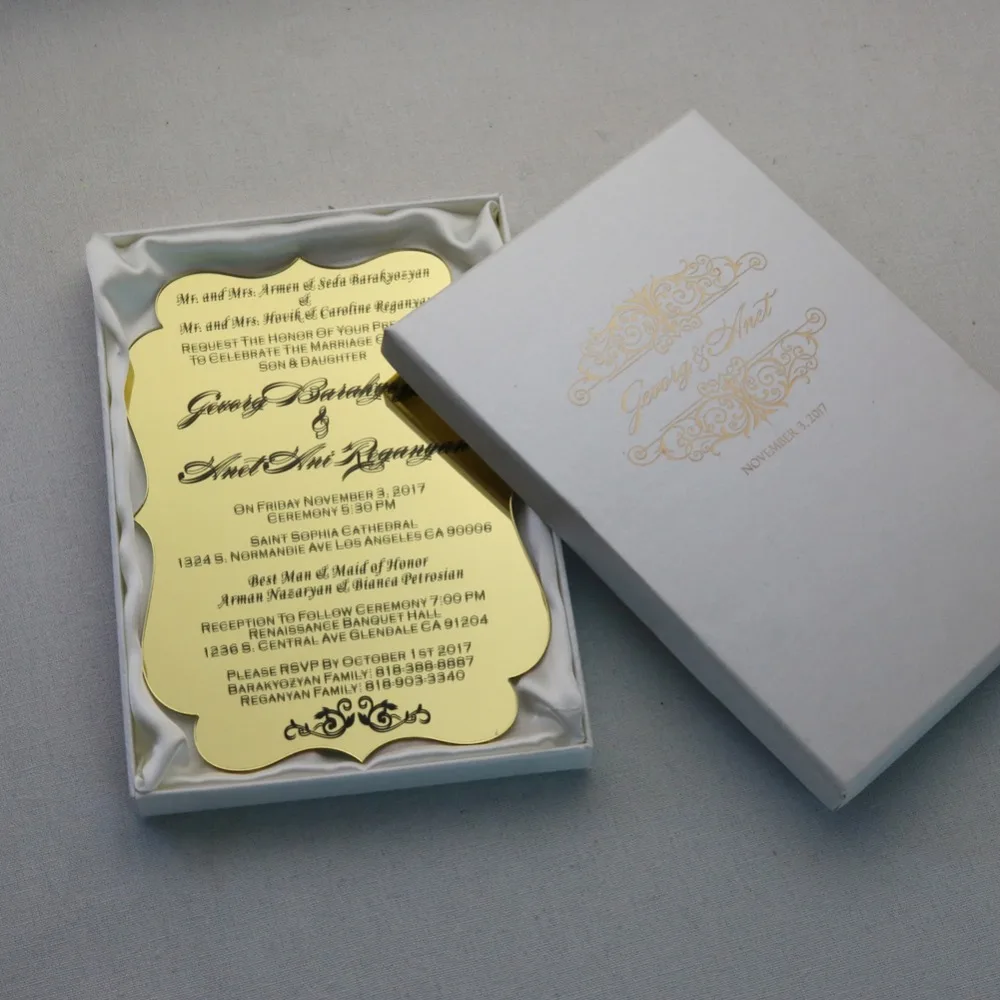 Carte D Invitation Personnalisee En Acrylique 50 Pieces Pour Mariage Avec Boite Couleur Ivoire Aliexpress