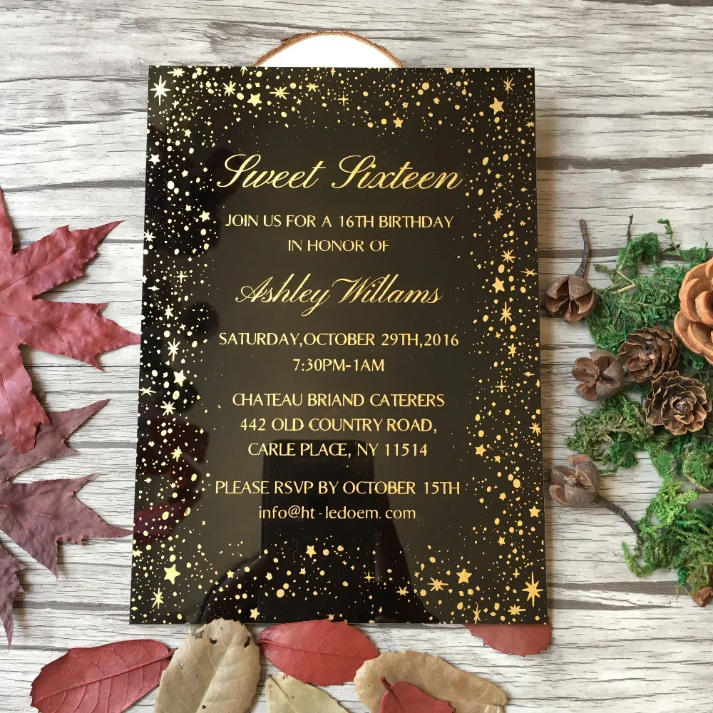 Carte D Invitation Personnalisee Carte D Anniversaire En Acrylique Noire 5x7 Pouces 100 Pieces Par Lot Invitations En Acrylique Jolie Carte D Invitation De Seize Pieces Aliexpress