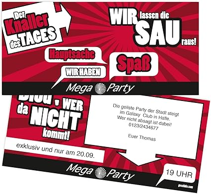 Cartes D Invitation Anniversaire Mega Party Invitations Personnalisee Avec Impression De Textes De Vos Carte Invitation 210 X 100mm Amazon Fr Fournitures De Bureau