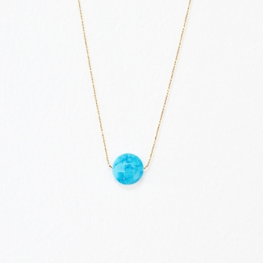 Collier Fin Plaque Or Avec Pierre Solitaire Turquoise Nologo Bijoux