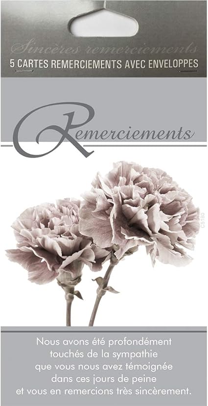 Afie Pochette De 5 Cartes Remerciements Condoleances Fleurs Oeuillets Gris Deces Deuil Fabrique En France Amazon Fr Fournitures De Bureau