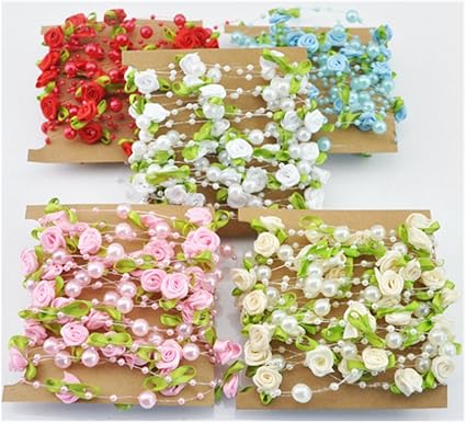 Freesiom Guirlande De Perle Fleurs Rose Fil Chaine Decoration Mariage Champetre Bijoux Cheveux Boheme Cadeau Couronne Diy 2m Rouge Amazon Fr Cuisine Maison