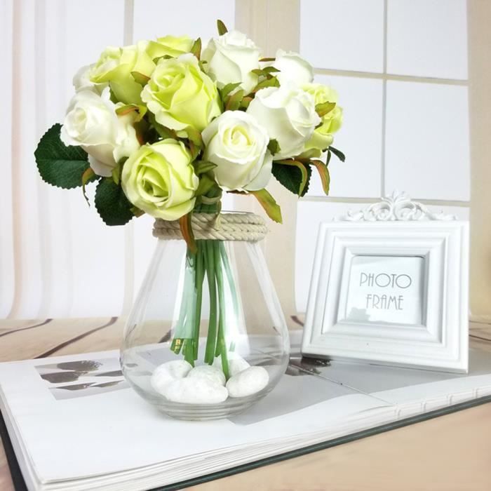 12pcs Bouquet De Fleur Roses Artificielles Mariage Exterieur Pour Cimetiere En Soie Decoration Mariage Champetre Blanc Vert Achat Vente Fleur Artificielle Soldes Sur Cdiscount Des Le Janvier Cdiscount