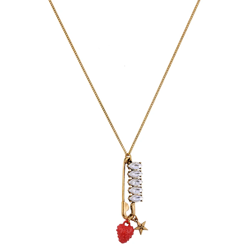 Chic Pas Cher Collier Pour Femmes Decontracte Antique Or Couleur Rouge Fraise Cristal Broche Pendentif Longue Chaine Vintage Collier Aliexpress