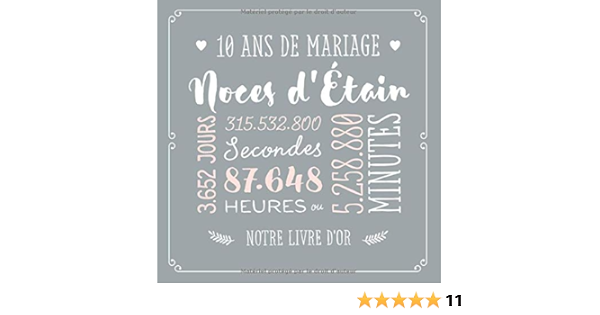 Noces de Coton 1 an de mariage Noces de Cuir 2 ans de mariage Noces de Froment 3 ans de mariage Noces de Cire 4 ans de mariage Noces de Bois 5 ans de mariage Noces de Chypre 6 ans de mariage Noces de Laine 7 ans de mariage Noces de Coquelicot 8 ans de mariage Noces de Faïence 9 ans de mariage Noces d'Etain 10 ans de mariage. * il reprend l'idée d'un tableau ardoise noir avec les textes écrits à la craie. Que cette belle harmonie perdure et que votre bonheur soit éternel".
