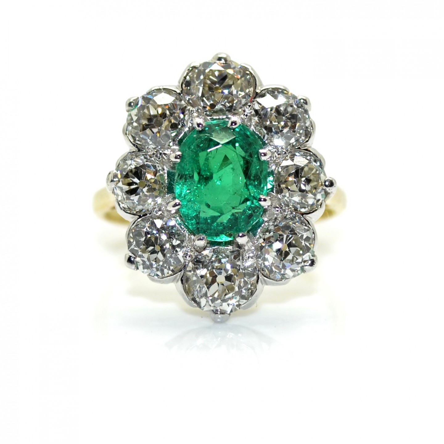 Bague Pompadour Emeraude Colombienne 2 13 Ct Et Diamants Bagues Anciennes Bijoux Anciens