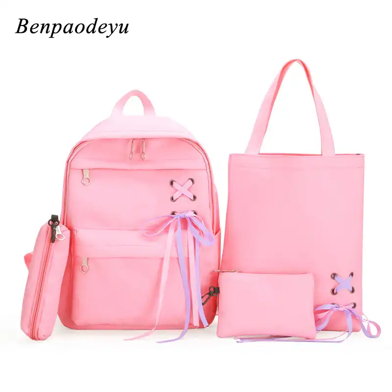 Sac A Dos A Dos A La Mode Pour Femmes Sacs D Ecole En Toile Pour Filles Decontracte Sacs Pour Enfants Adolescentes 4 Pieces Ensemble Aliexpress