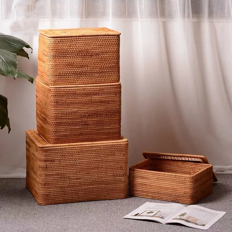 Main Tissage En Rotin Panier De Rangement Avec Couvercle Travail Manuel Accueil Salle A Manger De