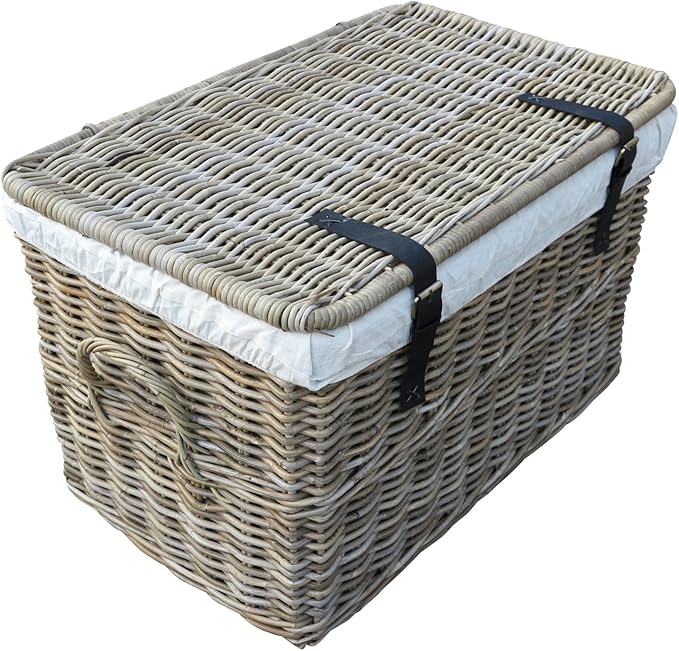 Marque Sidano Coffre Gris Corbeille En Rotin Avec Couvercle Corbeille Tressee En Rotin Avec Couvercle Coffre En Rotin Naturel Non Traite Rangement Et Organisation Coffres De Rangement