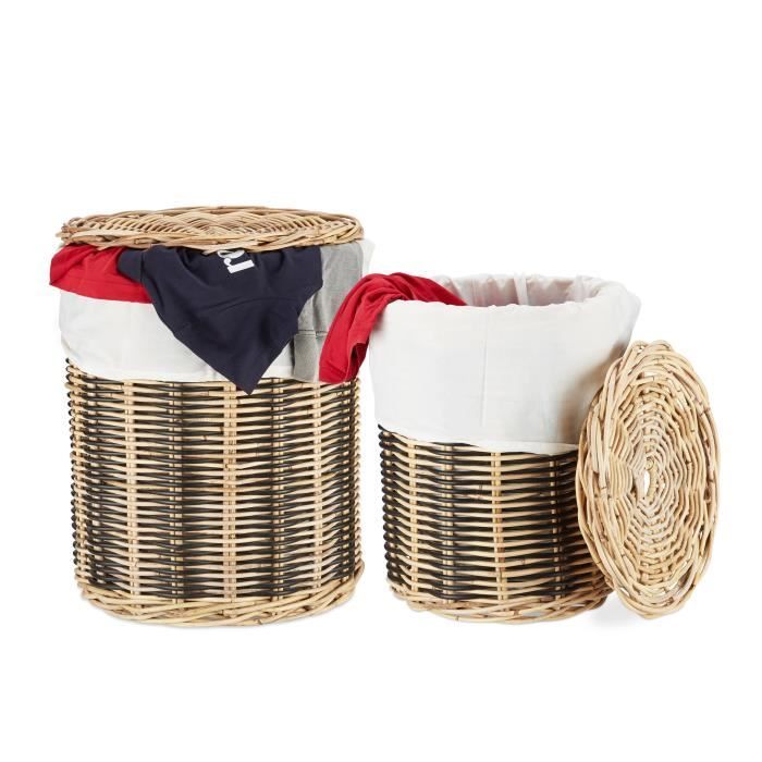Corbeilles A Linge Cuisine Maison Panier A Linge Rond En Osier Avec Couvercle Et Insert En Tissu Lavable