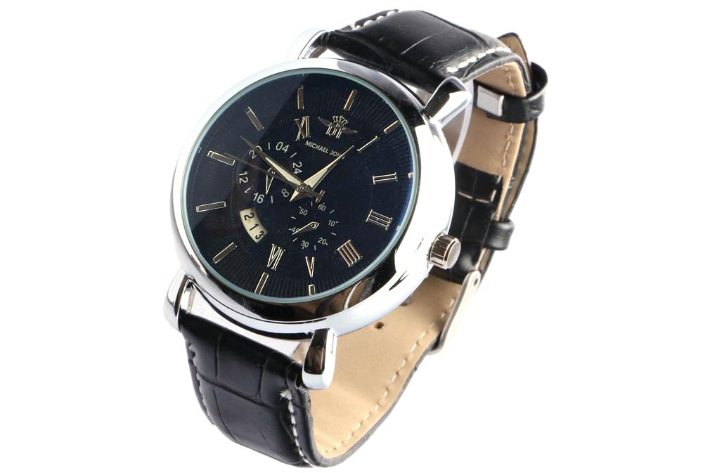 Montre Homme Bracelet Cuir Noir Classe Montre Michael John Livre 48h