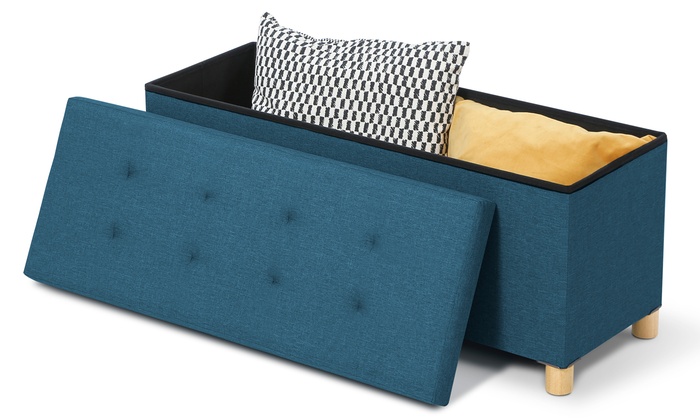 Banc Coffre De Rangement En Tissu Bleu Canard 100 Cm Id Market