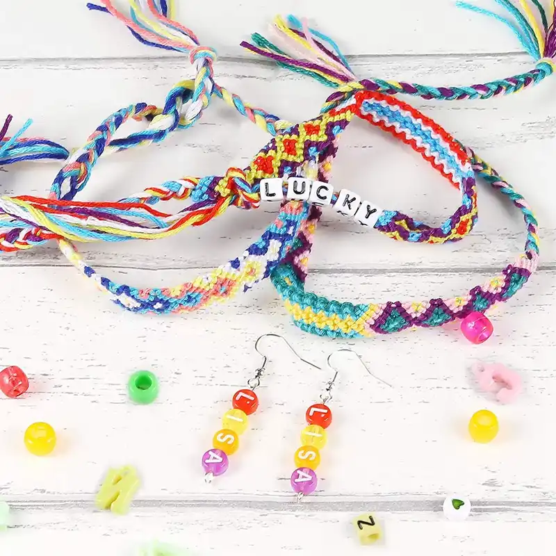 12 Styles Bracelet D Amitie Kit Avec Ficelle Et Lettre Perles Couleur Fil A Broder Cordon Elastique Tressage Disque Conclusions Fo Aliexpress