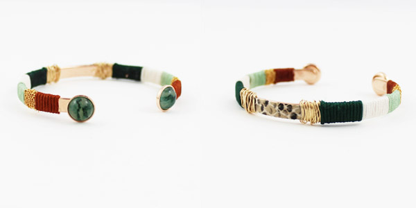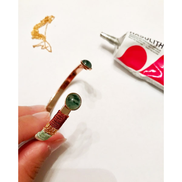 Diy Gold Metal Bangle Bracelet With Embroidery Thread And Cabochon Imitation Gemstone Perles Co