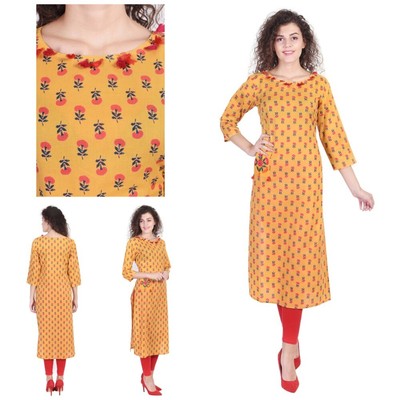 Bimba Femmes Anarkali Designer Coton Kurti 3 4 Manches Dames Kurta Vetement Vetements Indien Jaune Jaune Achat Vente Tunique Soldes Sur Cdiscount Des Le Janvier Cdiscount