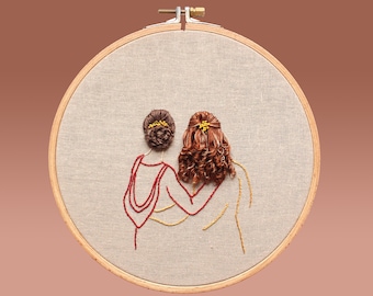 Two Girls Flowing Hair Beneath The Stars Hand Embroidery Etsy Hand Embroidery Modern Embroidery Hoop Art