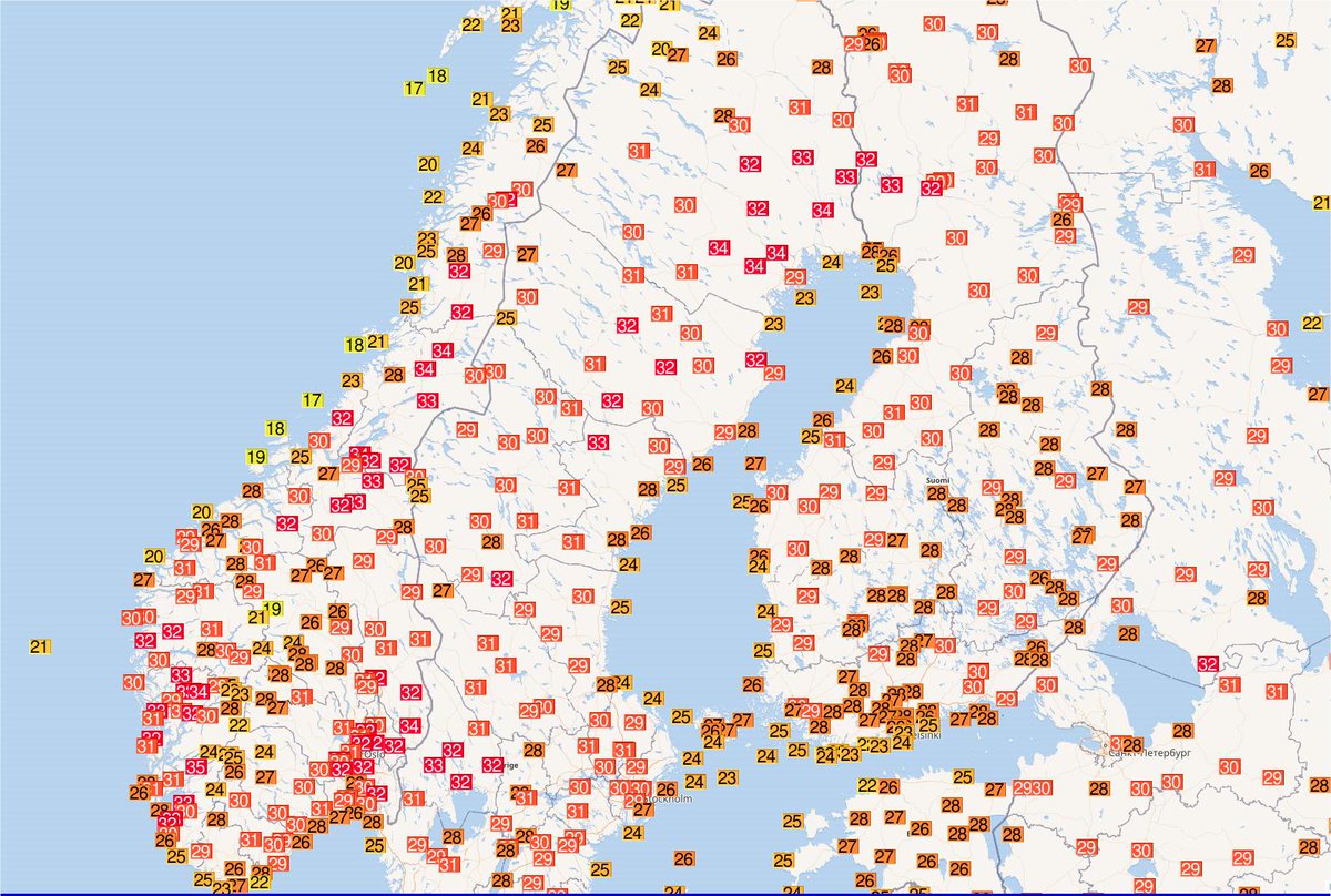 Keraunos A Twitter Les Fortes Chaleurs Ont Gagne La Scandinavie Et La Finlande Avec Parfois Plus De 34 C En Norvege Et Presque Au Niveau Du Cercle Polaire Arctique En Suede Carte Ogimet