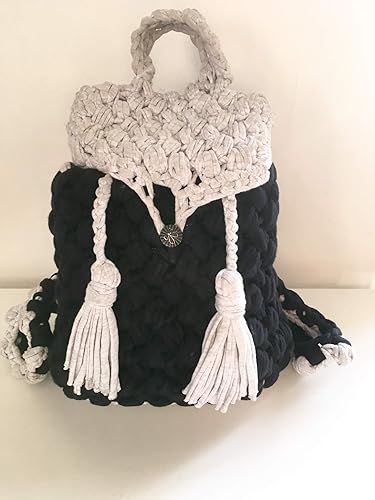 Sac A Dos Pour Femme Elegant 34 26 16 Cm Couleur Noir Et Gris Fil A Tricoter De Haute Qualite Amazon Fr Handmade