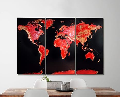 Carte Du Monde Fire Opal Avec Effet 3d En Peinture Acrylique Impression Sur Toile En 3 Parties Amazon Fr Cuisine Maison
